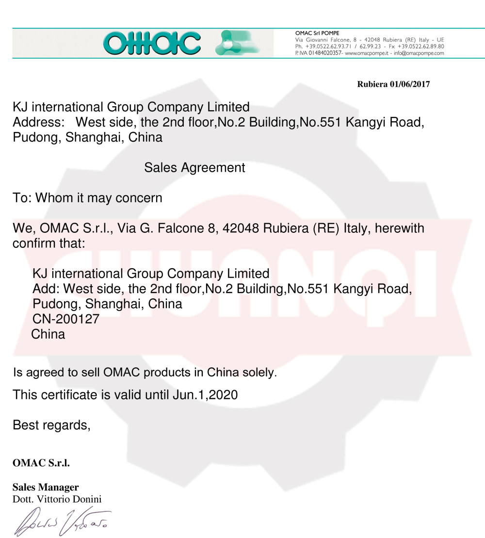 意大利OMAC代理證書(shū)